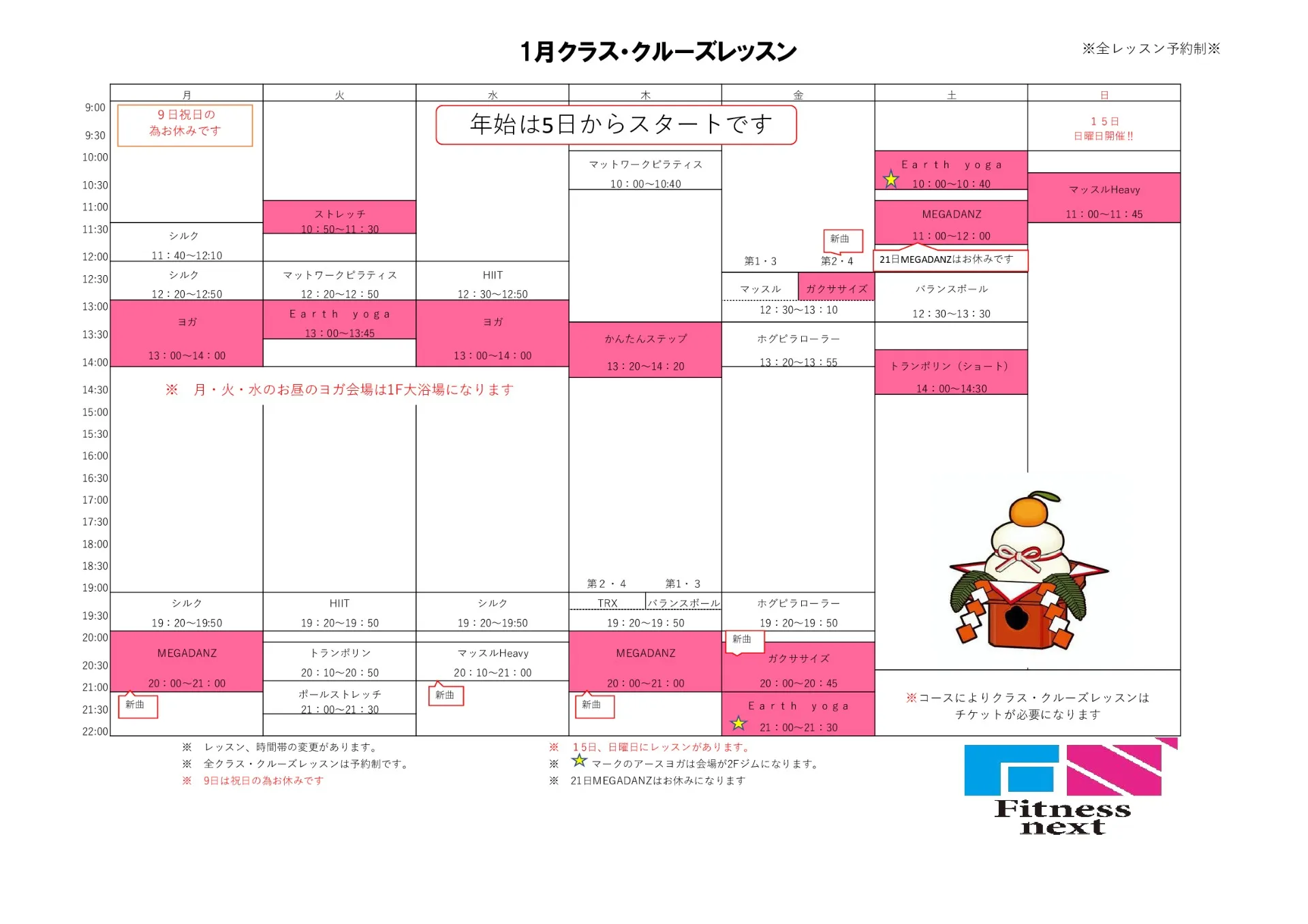 1月レッスンスケジュールです。