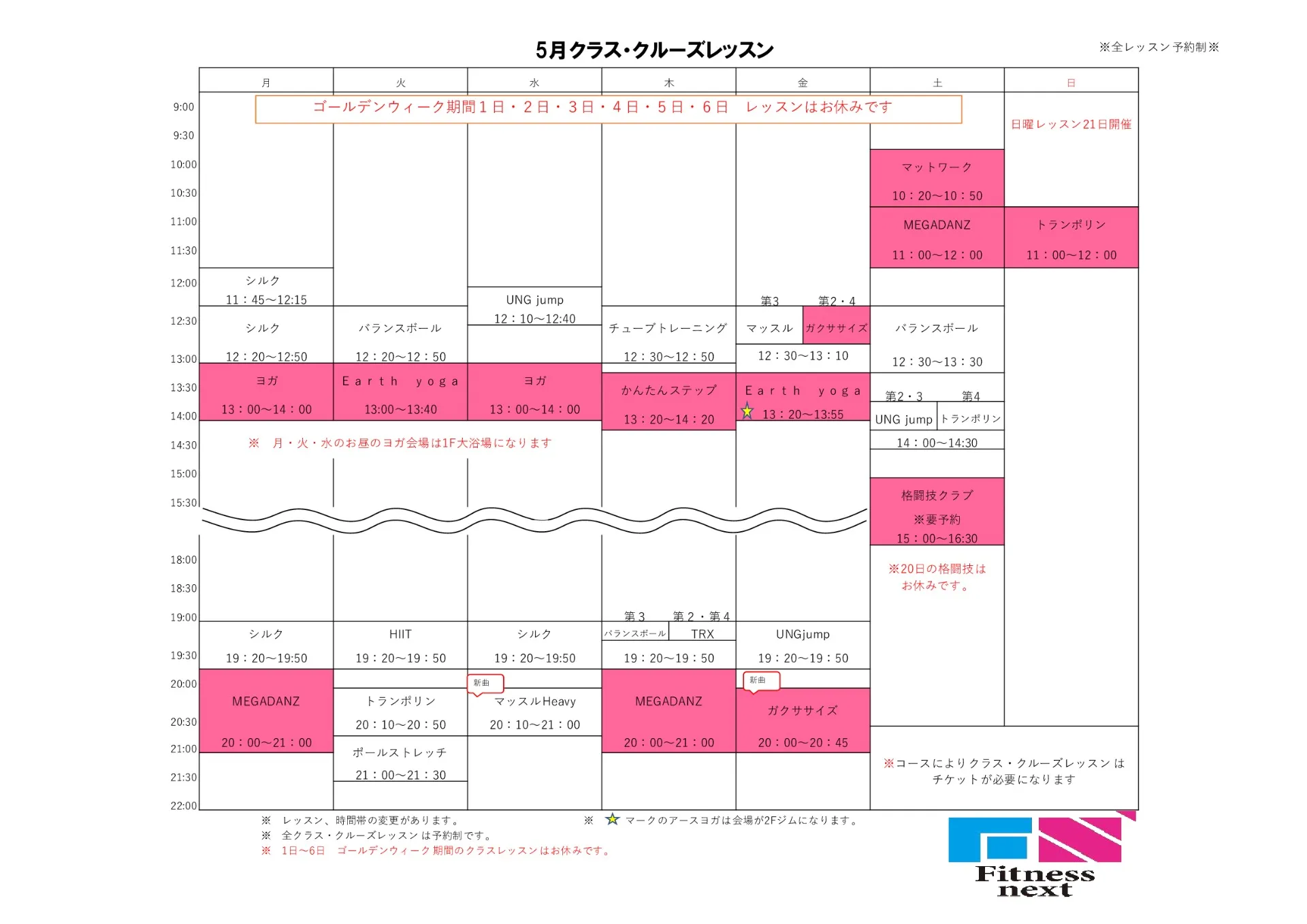 5月レッスンスケジュールの公開です!!チェックをお忘れなく。