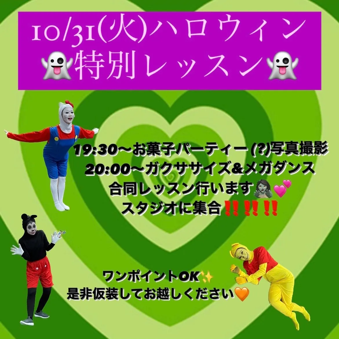 HALLOWEEN ハロウィンイベント 10/31(金)19:00頃からスタジオにて開催仮装はしてもしなくても、ワンポイントでもOKレッスンをお楽しみください。参加していただいた方には参加賞があります。皆様のご参加お待ちして…