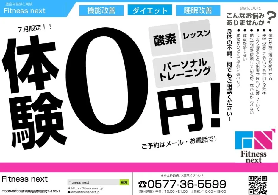 周年記念祭第3弾!! 7月限定Fitnessnext周年記念祭、第三弾!! 7月の水曜日限定☆パーソナルトレーニング・スタジオレッスン無料体験さらに酸素ルームは7月全日程で無料体験可能!!酸素ルームの効果は、がん化やがんの転移…