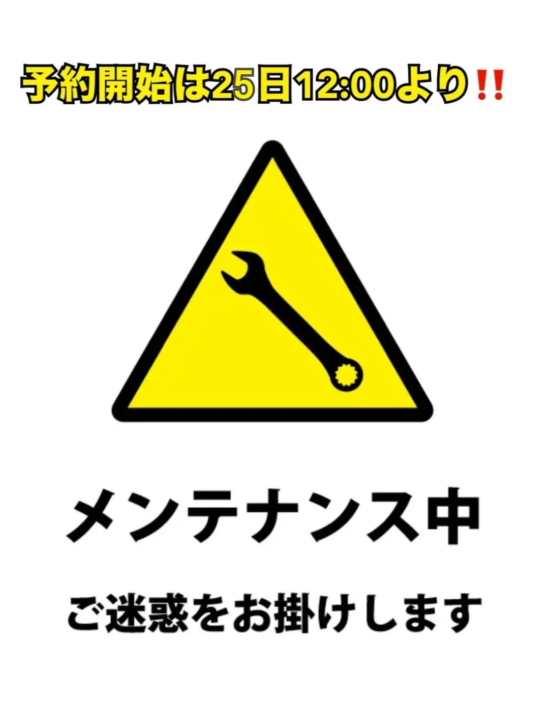 メンテナンス メンテナンスの為いつもFitnessnextをご利用いただき誠にありがとうございます。予約開示の為24日16時~25日12時頃ネットからの予約は出来ません。10月予約は25日12:00頃よりスタートします。皆様、ご理…
